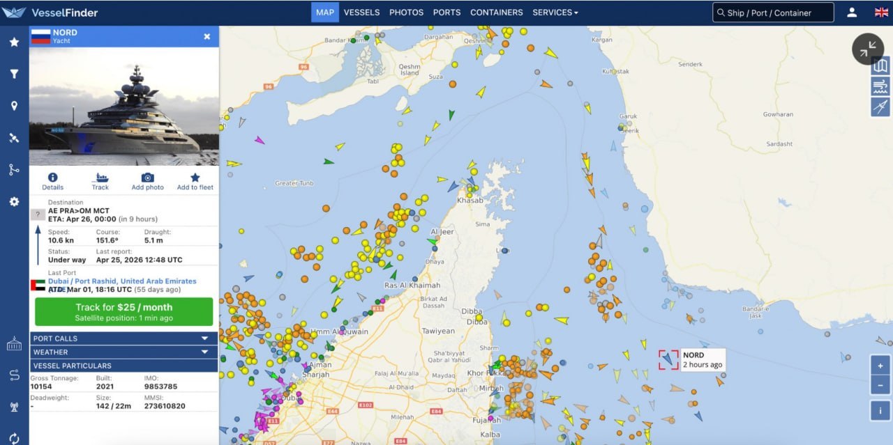 According to vessel tracking data from MarineTraffic, the 142-meter Nord superyacht departed Dubai on April 24 and… pic.twitter.com/yproQUowdt