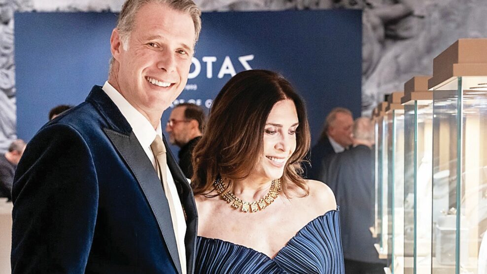 Στα της λαμπερής εκδήλωσης τώρα, η πρόεδρος του οίκου, Μαριάν Λε Κλερ-Παπαλέξη, μαζί με τον καλλιτεχνικό διευθυντή και CEO, Γιώργο Παπαλέξη, υποδέχθηκαν τους καλεσμένους και τους ξενάγησαν στην πλούσια ιστορία του οίκου μέσα από την έκθεση με τίτλο «The Art of Gold – Revealing unpublished and iconic jewellery masterpieces». Κάπως έτσι, οι εκλεκτοί καλεσμένοι τους ξεκίνησαν ταξίδι περιτριγυρισμένοι από την εικονογραφία των ζωφόρων του Παρθενώνα, όπου παρουσιάστηκαν οι δημιουργίες της επετείου, τιμώντας την κληρονομιά της «Chrysotechnie Zolotas».