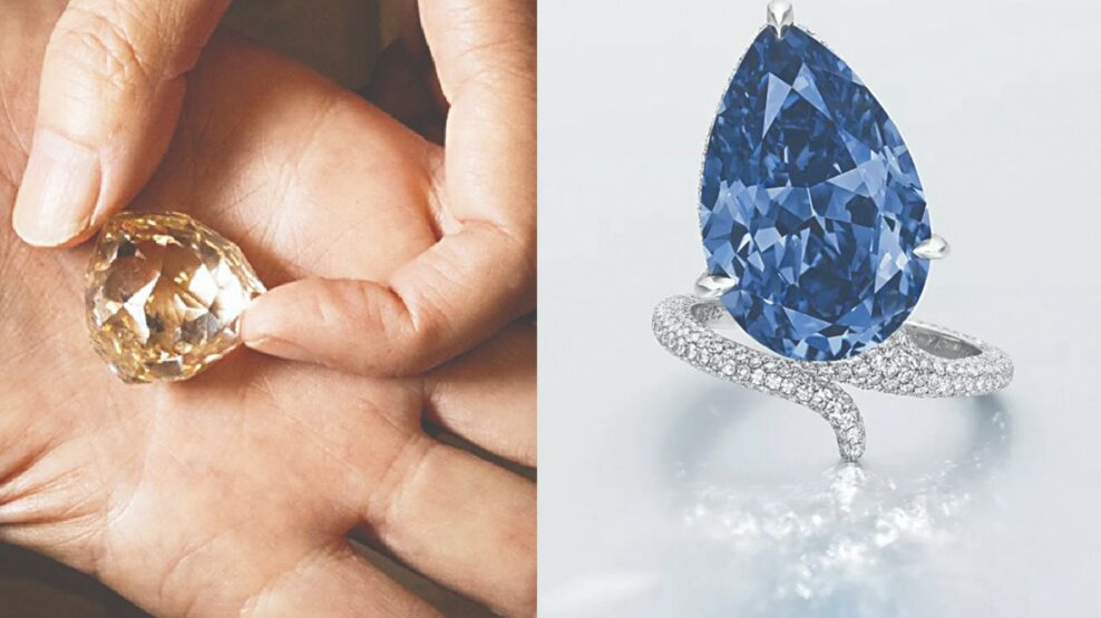 Τωρινό παράδειγμα είναι το μπλε διαμάντι 9,51 καρατίων, που μόλις πωλήθηκε από τον Christie’s στη Γενεύη για 25,6 εκατομμύρια δολάρια. Το ίδιο διαμάντι είχε παρουσιαστεί το 2014 ως Zoe Diamond στη Νέα Υόρκη και τότε είχε πωληθεί για 32,6 εκατομμύρια δολάρια, σπάζοντας το παγκόσμιο ρεκόρ για μπλε διαμάντι, συγκεντρώνοντας τον θαυμασμό και των πιο απαιτητικών συλλεκτών. Ωστόσο, το αδιαμφισβήτητο αστέρι των δημοπρασιών είναι το Pink Star, 59,6 καρατίων, που πουλήθηκε το 2017 στο Χονγκ Κονγκ για 71,2 εκατομμύρια δολάρια. Παραμένει αξεπέραστο – το ακριβότερο κόσμημα όλων των εποχών. Έπονται το Williamson Pink Star (57,7 εκατ. δολάρια) και το Oppenheimer Blue, 14,62 καρατίων, που πωλήθηκε το 2016 για 57,5 εκατ. δολάρια, καταγράφοντας τη μεγαλύτερη τιμή για μπλε διαμάντι. Η λίστα κλείνει με το Pink Legacy (50,3 εκατ. δολάρια).
