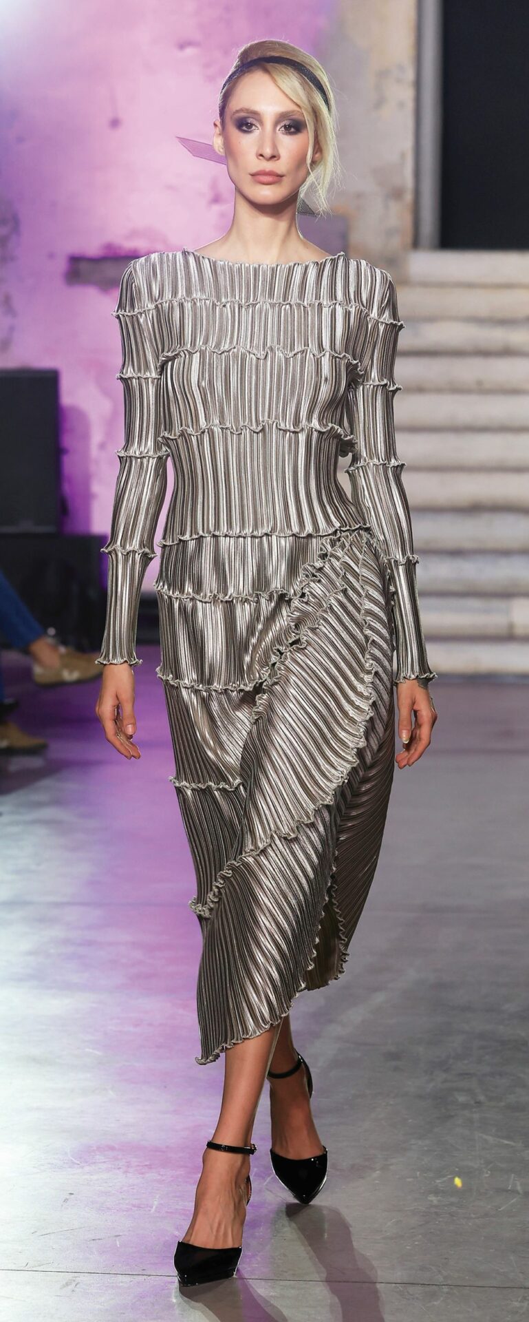 Τι μας έμεινε από την προχθεσινή βραδιά και τη φιέστα της ελληνικής μόδας -στο Athens Fashion Week- στο Καπνεργοστάσιο της Λένορμαν; Το μίνι της Χριστίνας Ζαφειρίου στα θεόρατα πόδια της Φαίης Σκορδά. Tα… θεωρεία της Marigona στο ίδιο ντεφιλέ, μαζί με διαφάνειες και πλουμιστά μαγιό-κορμάκια. Πρωτίστως, το κοκτέιλ πολυτέλειας-κομψότητας στις πτυχωτές, ladylike, όπως η ίδια, δημιουργίες τής «μεγάλης κυρίας της εγχώριας μόδας» Δάφνης Βαλέντε (της συλλογής «Oleander»). Τα περίτεχνα μπροκάρ με απλικαρισμένα κοσμήματα, που παραπέμπουν σε τολμηρή βερσιόν της αυτοκρατορικής (τσαρικής) Ρωσίας, μαζί και το ευφάνταστο layering, του Δημήτρη Ντάσιου. Κι αν αναρωτιέστε ποια από τις κάθε «κοπής» celebrities που αντικρίσαμε ξεχώρισε, το αβαντάζ παίρνει άνετα η Ταμίλα Κουλίεβα: με τζιν τζάκετ, a la garcon σε φυσική σκούρα καστανή απόχρωση μαλλί και με το λεπτό φιζίκ της, θύμιζε κοριτσόπουλο.