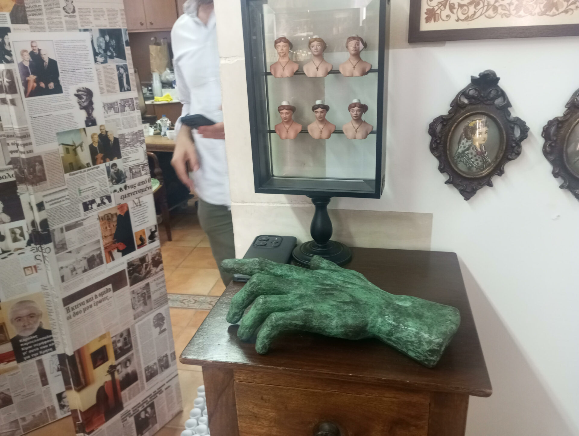 Η διευθύντρια του Μουσείου, Στέλλα Κουτσουπάκη, ανέλαβε να μας μυήσει, πίνοντας, όπως κι εμείς άλλωστε, σαμπάνια, στην υγεία όλων μας, στον θυελλώδη βίο αυτού του εκπληκτικού βραβευμένου γλύπτη που βιοποριζόταν ως (ευφυής) κομμωτής, γνωστό ανά την υφήλιο και καθότι ο πρώτος Έλληνας με τον οποίο συνεργάστηκε η L’ Oréal, αναντικατάστατο για στρατιά σούπερ σταρ – από τη Μαρία Κάλλας έως τη Μελίνα Μερκούρη, την Κατρίν Ντενέβ, τη Δαλιδά και δεκάδες ακόμη διασημότητες και royalties.