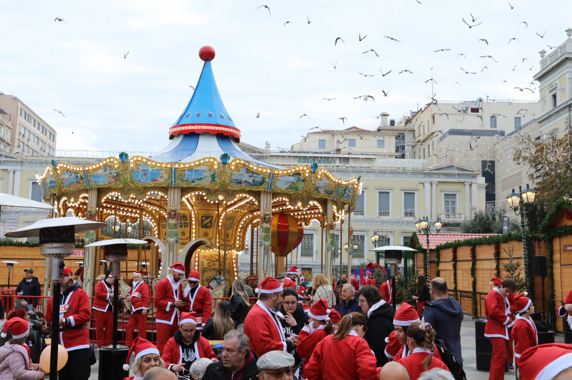 Οι συμμετέχοντες, φορώντας τη χαρακτηριστική στολή του Αγίου Βασίλη, καλύπτουν μια διαδρομή 2,8 χιλιομέτρων μέσα από εμβληματικά σημεία της Αθήνας.