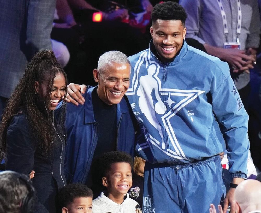 Το NBA All-Star Game δεν προσέφερε μόνο εντυπωσιακό μπασκετικό θέαμα, αλλά μεταφράστηκε και σε παρέλαση προσωπικοτήτων παγκοσμίου φήμης. Από την πλευρά μας θα εστιάσουμε στον Γιάννη Αντετοκούνμπο και στη συνάντηση… κορυφής που είχε με τον πρώην πρόεδρο των Ηνωμένων Πολιτειών, Μπαράκ Ομπάμα – παρευρέθη με τη σύζυγό του, Μισέλ, στο Intuit Dome του Λος Άντζελες. Οι Μιλγουόκι Μπακς δημοσίευσαν στα social media μια φωτογραφία του «Γιάνναρου» όπου εμφανίζεται να συζητά με τον Μπαράκ Ομπάμα σε πολύ φιλική ατμόσφαιρα. Ενώ η μητέρα του, Βερόνικα, πόζαρε μες στα χαμόγελα με τη μια φορά κι έναν καιρό πρώτη κυρία των ΗΠΑ, Μισέλ Ομπάμα.