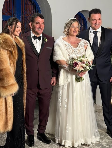 Ο χρυσός Ολυμπιονίκης της άρσης βαρών Πύρρος Δήμας το πήρε το κορίτσι του, Αφροδίτη Σκαφίδα, με παπά και με κουμπάρο. Το μυστήριο τελέστηκε προχθές, παρουσία μόνο των οικείων τους, στον Άγιο Γεώργιο στο Καβούρι, με την Αφροδίτη -που περιμένει το κοριτσάκι τους- να λάμπει. «Εδώ ξεκινάει το δικό μας ταξίδι… Γεμάτο αγάπη, ευτυχία, όνειρα που θα υλοποιήσουμε μαζί… Ευχαριστώ όσους βοηθήσατε να γίνει αυτός ο υπέροχος γάμος», έγραψε χθες η νυφούλα και μέλλουσα μανούλα και πλημμύρισε ο ινσταγκραμικός της λογαριασμός ευχές για βίο ανθόσπαρτο. Στη δεξίωση του κορυφαίου αθλητή -που έχει τέσσερα παιδιά από τον προηγούμενο γάμο του- και της πρώην παίκτριας του «Survivor» εντοπίσαμε τους κολλητούς τους φίλους, τη σχεδιάστρια-μοντέλο Ιωάννα Σιαμπάνη και τον επιχειρηματία Τζίμη Σταθοκωστόπουλο, που τους καταχειροκρότησαν, ενώ οι νεόνυμφοι μπήκαν στην αίθουσα ενώ έπαιζε το κομμάτι από τις Melisses «30-40». Στη συνέχεια, το μικρόφωνο πήρε η νύφη, που αφιέρωσε στον άντρα της το «Όλα σ’ αγαπάνε» του Σταμάτη Γονίδη. Tip: Εννοείται, ο γαμπρός έριξε τις στροφές του στις αγαπημένες του ζεϊμπεκιές.