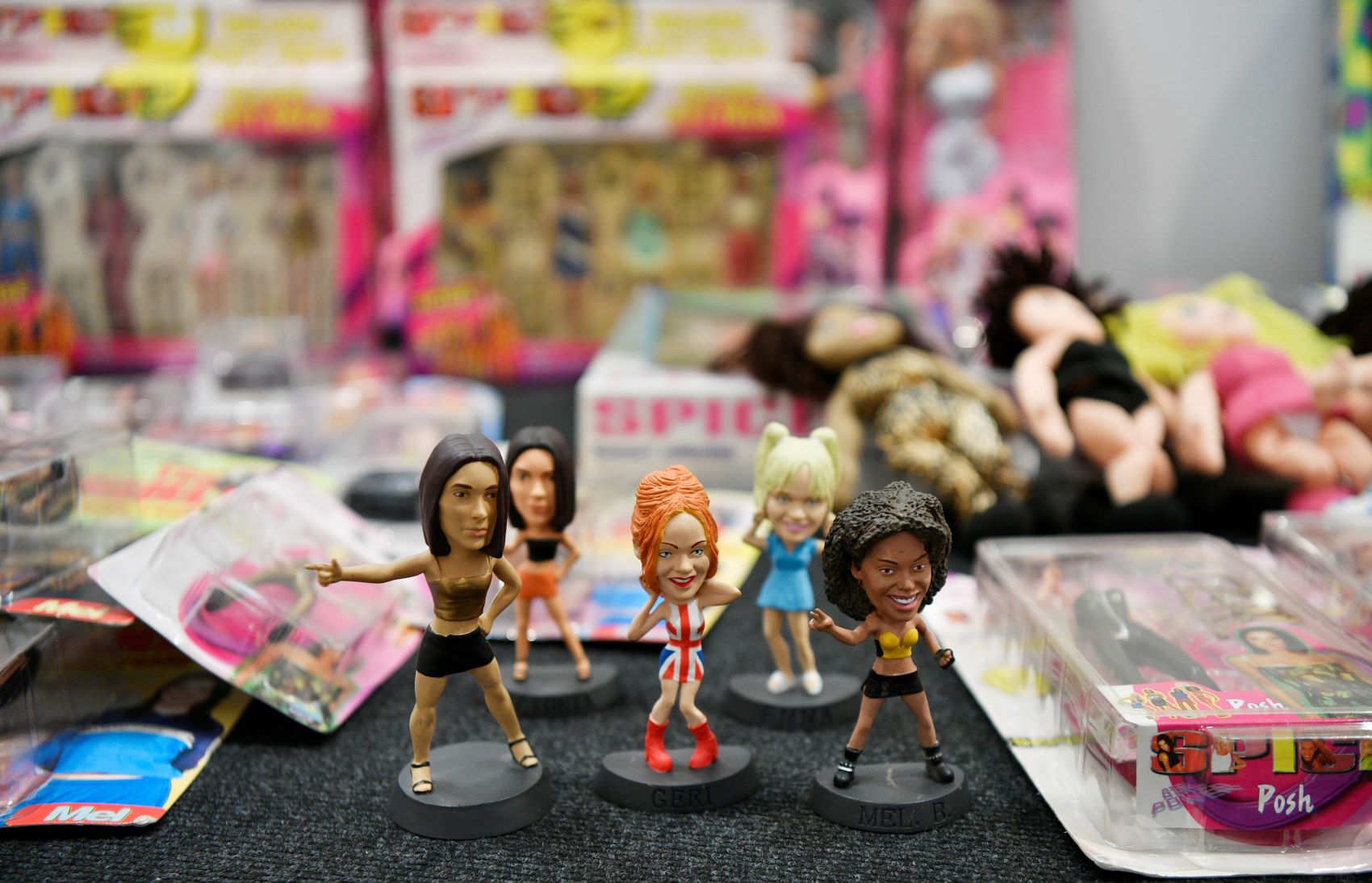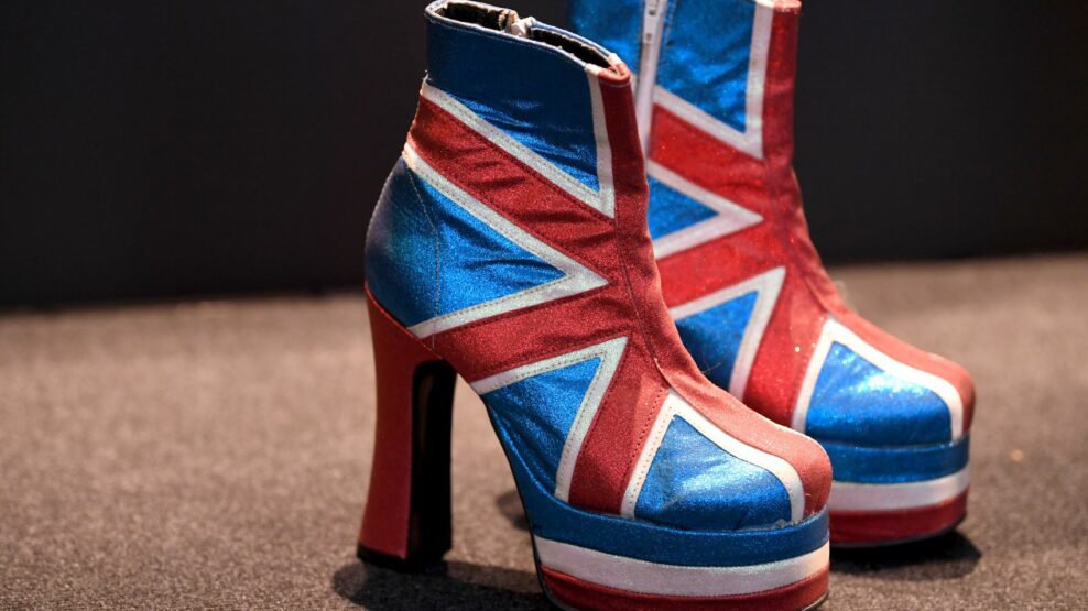 Ανάμεσα στα εκθέματα ξεχωρίζουν επίσης οι διάσημες μπότες με πλατφόρμα και τη σημαία του Ηνωμένου Βασιλείου της Geri Halliwell, που έγιναν σύμβολο της εποχής.