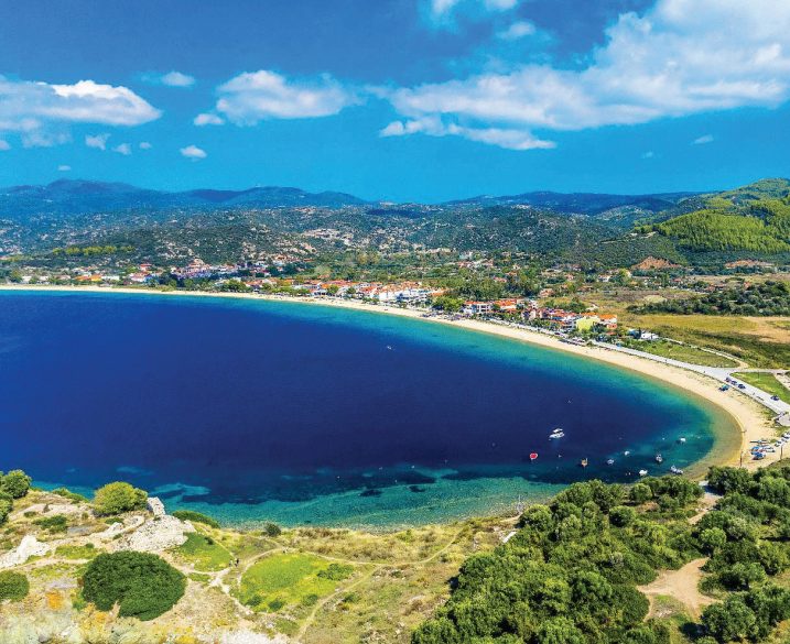 Η παραλία Τορώνη, στη Σιθωνία της Χαλκιδικής, από ψηλά