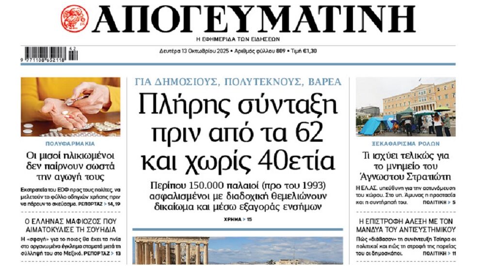 – Πλήρης σύνταξη πριν από τα 62 και χωρίς 40ετία