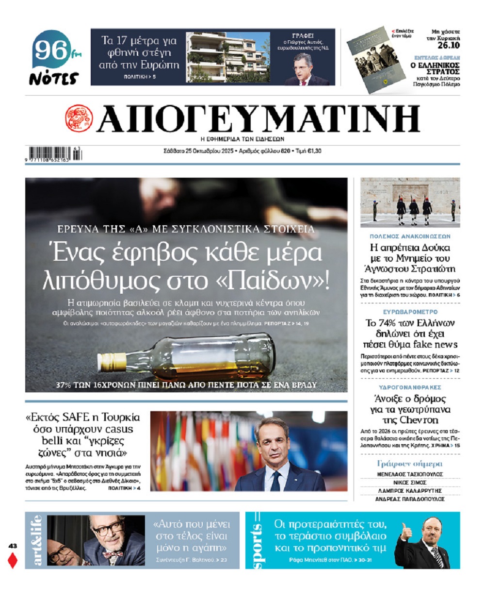 – 37% των 16χρονων πίνει πάνω από πέντε ποτά σε ένα βράδυ