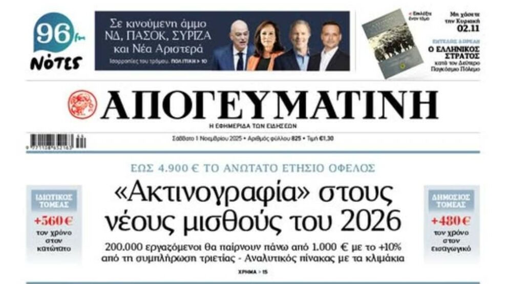 – «Ακτινογραφία» στους νέους μισθούς του 2026 – Έως 4.900 ευρώ το ανώτατο ετήσιο όφελος – 200.000 εργαζόμενοι θα παίρνουν πάνω από 1.000 ευρώ με το +10% από τη συμπλήρωση τριετίας – Αναλυτικός πίνακας με τα κλιμάκια – Ιδιωτικός τομέας: +560 ευρώ τον χρόνο στον κατώτατο – Δημόσιος τομέας: +480 ευρώ τον χρόνο στον εισαγωγικό.