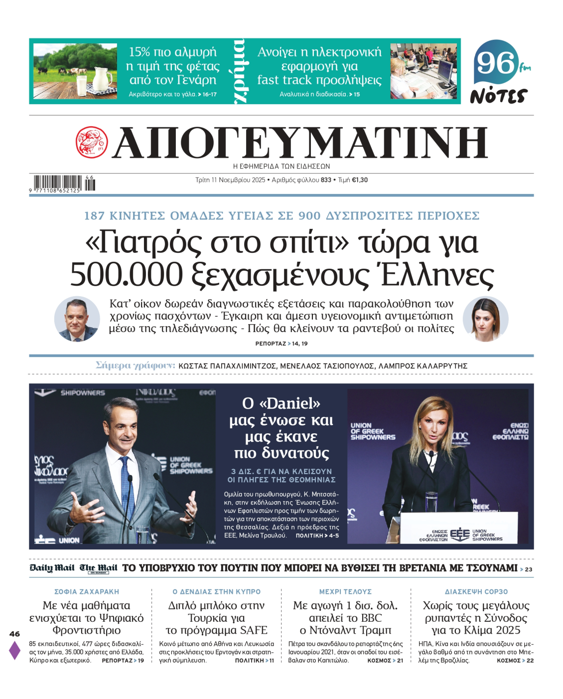 Σήμερα γράφουν: ΚΏΣΤΑΣ ΠΑΠΑΧΛΙΜΊΝΤΖΟΣ, ΜΕΝΕΛΑΟΣ ΤΑΣΙΟΠΟΥΛΟΣ, ΛΑΜΠΡΟΣ ΚΑΛΑΡΡΥΤΗΣ