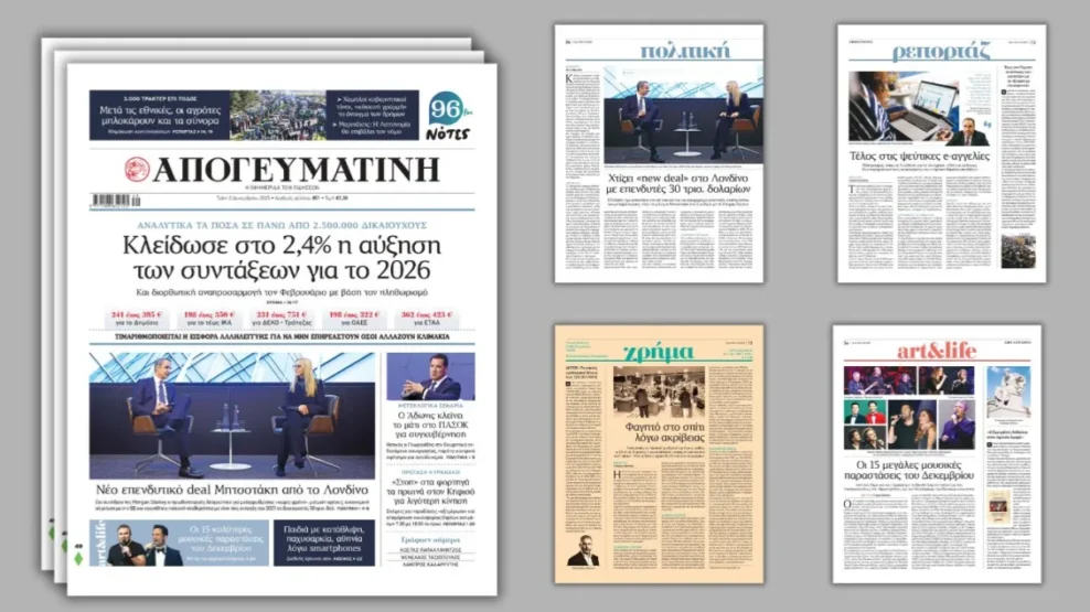 Ρεπορτάζ, άρθρα, αναλύσεις στην Απογευματινή που κυκλοφορεί σε όλα τα περίπτερα της χώρας