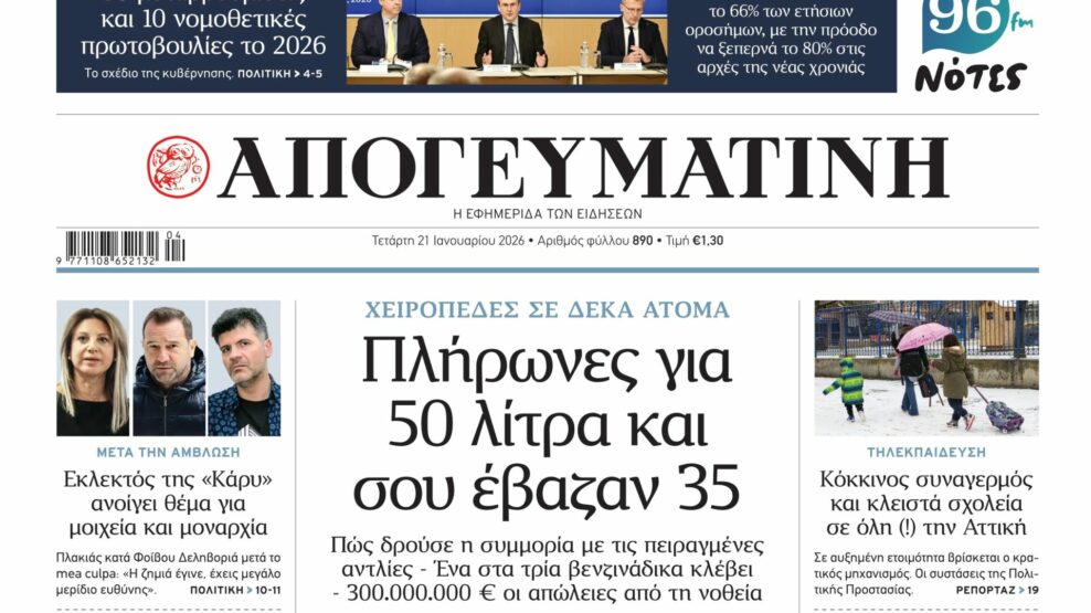 Διαβάστε σήμερα στην Απογευματινή: