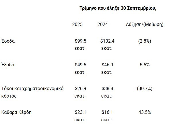 Η Capital Clean Energy Carriers Corp. ανακοίνωσε ισχυρά οικονομικά αποτελέσματα για το τρίτο τρίμηνο του 2025, με τα καθαρά κέρδη να ανέρχονται στα 23,1 εκατ. δολάρια, σημειώνοντας αύξηση 43,5% σε ετήσια βάση.