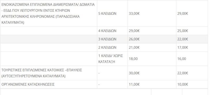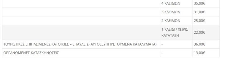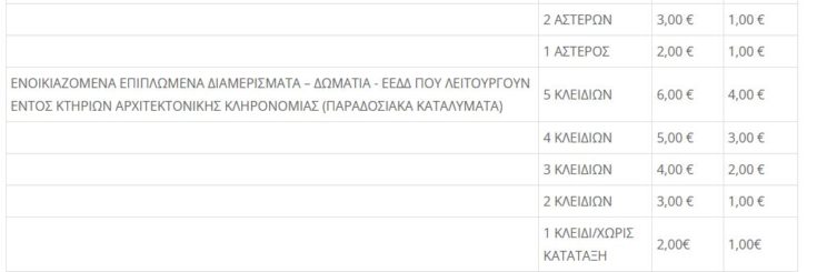 οικονομική αξία για τη διαμονή σε τουριστικά καταλύματα