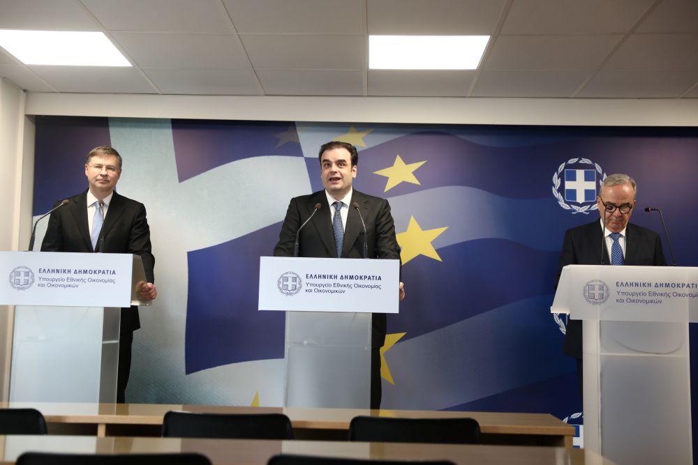 Συνάντηση με τον Ευρωπαίο Επίτροπο Οικονομίας, Βάλντις Ντομπρόβσκις, είχε σήμερα ο υπουργός Εθνικής Οικονομίας και Οικονομικών και πρόεδρος του Eurogroup Κυριάκος Πιερρακάκης, παρουσία της πολιτικής ηγεσίας του υπουργείου. Στη συνάντηση συμμετείχαν επίσης ο αναπληρωτής υπουργός Νίκος Παπαθανάσης και οι υφυπουργοί Θάνος Πετραλιάς και Γιώργος Κώτσηρας.