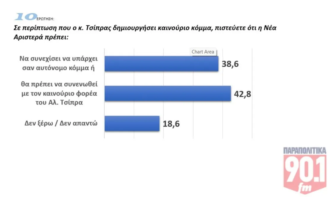 - 23,9% θεωρεί ότι ένα νέο κόμμα Τσίπρα θα μπορούσε να καλύψει το αντιπολιτευτικό κενό.
