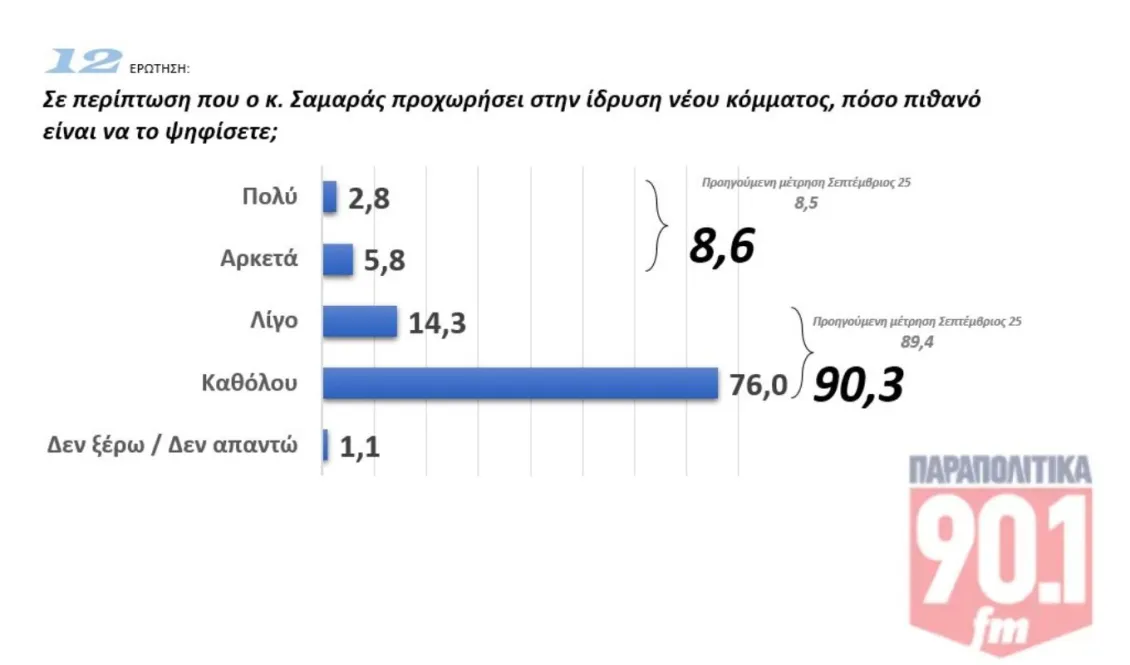- Αντίστοιχα, 19,8% πιστεύει το ίδιο για ενδεχόμενο κόμμα Σαμαρά.