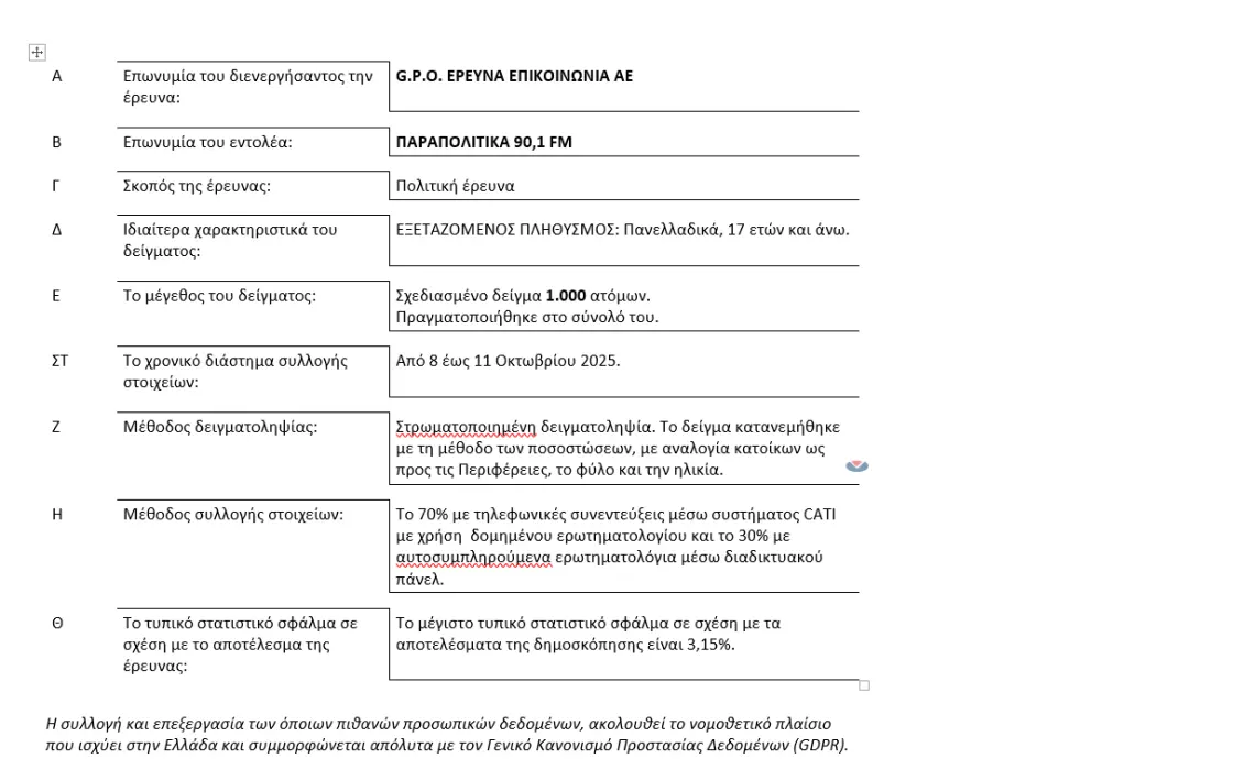 Η δημοσκόπηση της GPO για τα Παραπολιτικά 90,1 αποτυπώνει ένα ρευστό πολιτικό τοπίο, με τις τάσεις να δείχνουν μεταβατικότητα και αναζήτηση νέων πολιτικών εκφράσεων τόσο στο κυβερνητικό όσο και στο αντιπολιτευτικό στρατόπεδο.