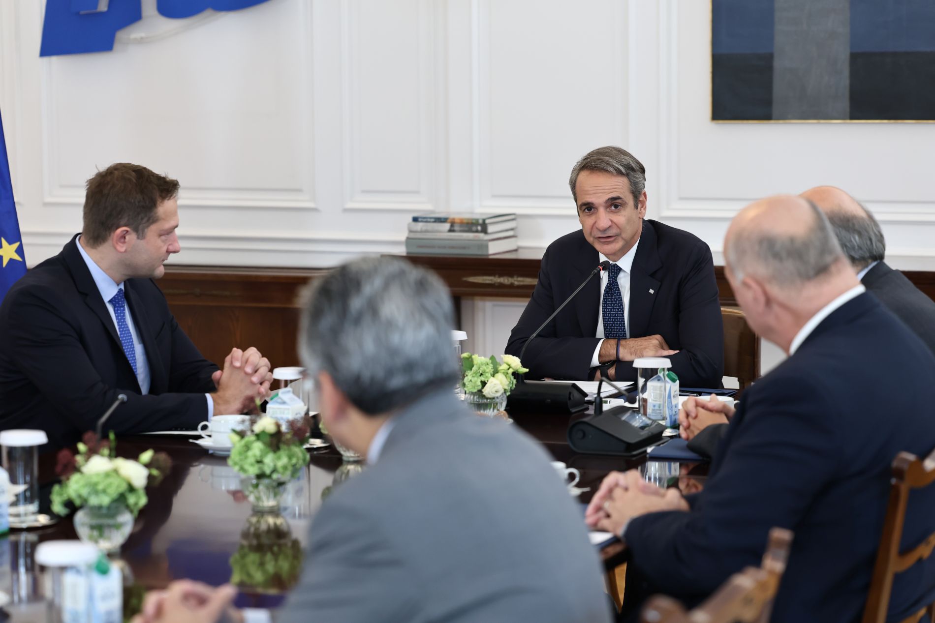 Στο Μέγαρο Μαξίμου πραγματοποιήθηκε η συνάντηση του πρωθυπουργού Κυριάκου Μητσοτάκη με τον Ευρωπαίο επίτροπο Γεωργίας και Τροφίμων, Κρίστοφ Χάνσεν, ο οποίος επισκέπτεται τη χώρα μας στο πλαίσιο της περιοδείας του στα κράτη-μέλη της Ευρωπαϊκής Ένωσης.