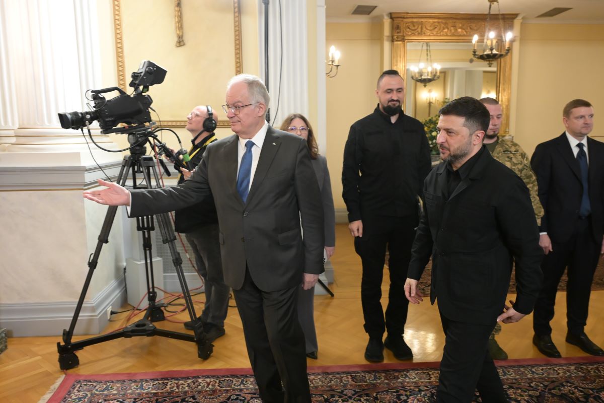Πρώτος σταθμός της επίσκεψής του ήταν το Προεδρικό Μέγαρο, όπου στις 13:00 συναντήθηκε με τον Πρόεδρο της Δημοκρατίας, Κωνσταντίνο Τασούλα. Στη διάρκεια της συζήτησης, που διήρκησε περίπου 45 λεπτά, ο κ. Τασούλας εξέφρασε την αταλάντευτη στήριξη της Ελλάδας στον αγώνα της Ουκρανίας για την υπεράσπιση της εδαφικής της ακεραιότητας.