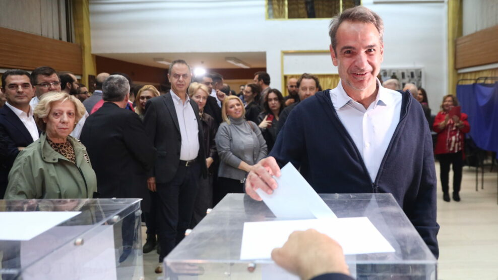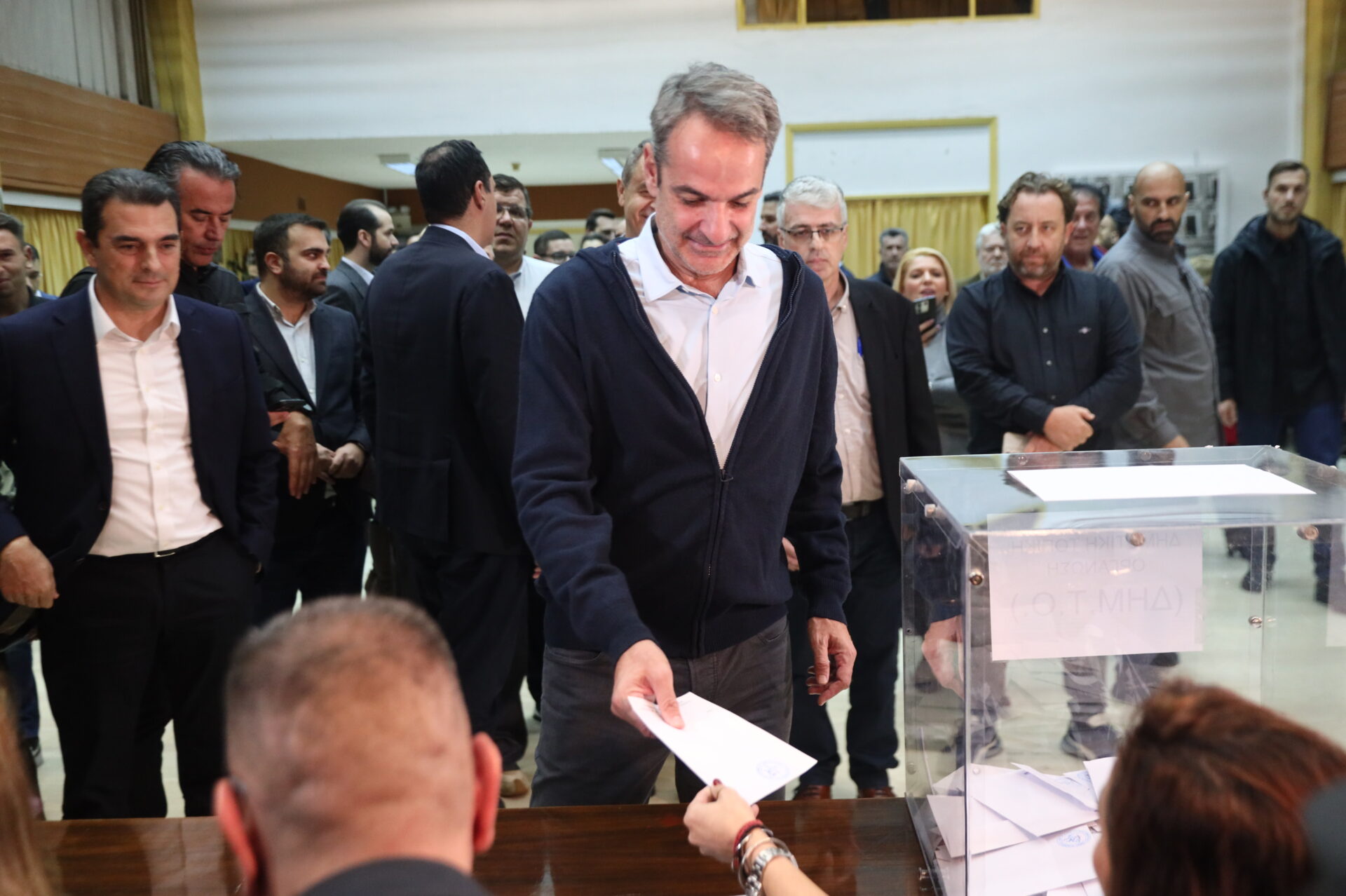 «Γέμισαν οι κάλπες», ήταν το πρώτο σχόλιο του κ. Μητσοτάκη κατά την άφιξή του στη γραμματεία της εκλογικής διαδικασίας.