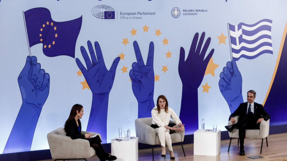 Στην Εθνική Πινακοθήκη πραγματοποιήθηκε η εκδήλωση με τίτλο «Powering the Next Generation of Europeans», παρουσία του Πρωθυπουργού Κυριάκου Μητσοτάκη και της Προέδρου του Ευρωπαϊκού Κοινοβουλίου Ρομπέρτα Μέτσολα. Τη συζήτηση συντόνισε η Υπουργός Κοινωνικής Συνοχής και Οικογένειας, Δόμνα Μιχαηλίδου, ενώ την εκδήλωση παρακολούθησε πλήθος νέων που συμμετείχαν ενεργά με ερωτήσεις και παρεμβάσεις.