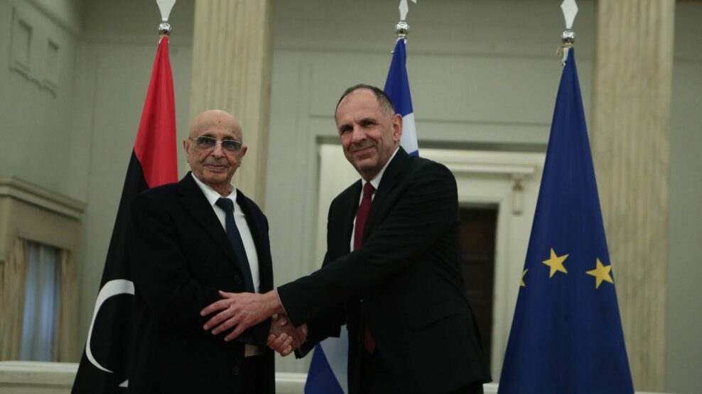 Mιλώντας στο συνέδριο του «Athens Policy Dialogues», ο κ. Γεραπετρίτης εμφανίστηκε αισιόδοξος για το κεφάλαιο «Λιβύη», λέγοντας: «Χωρίς να αγνοούμε το αγκάθι του ανυπόστατου τουρκολιβυκού μνημονίου, είμαστε σήμερα η μόνη ευρωπαϊκή χώρα που διατηρεί ανοικτούς διαύλους στο ανώτατο επίπεδο και με τις δύο πλευρές στη Λιβύη, έχοντας επιτύχει παράλληλα τη μείωση των μεταναστευτικών ροών από τα λιβυκά παράλια, τον σεβασμό της ελληνικής μέσης γραμμής στην προκήρυξη οικοπέδων για την εξόρυξη υδρογονανθράκων από τη Λιβύη, καθώς και την επανενεργοποίηση των τεχνικών επιτροπών για την οριοθέτηση της ΑΟΖ μεταξύ των δύο χωρών».