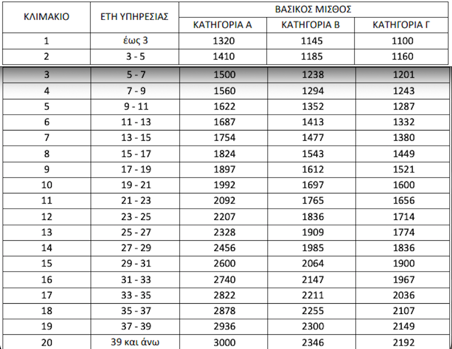 Η μισθολογική πρόοδος γίνεται ανά τριετία στο πρώτο κλιμάκιο και ανά διετία στα επόμενα, ενώ καθορίζεται σαφές πλαίσιο βασικών αποδοχών.