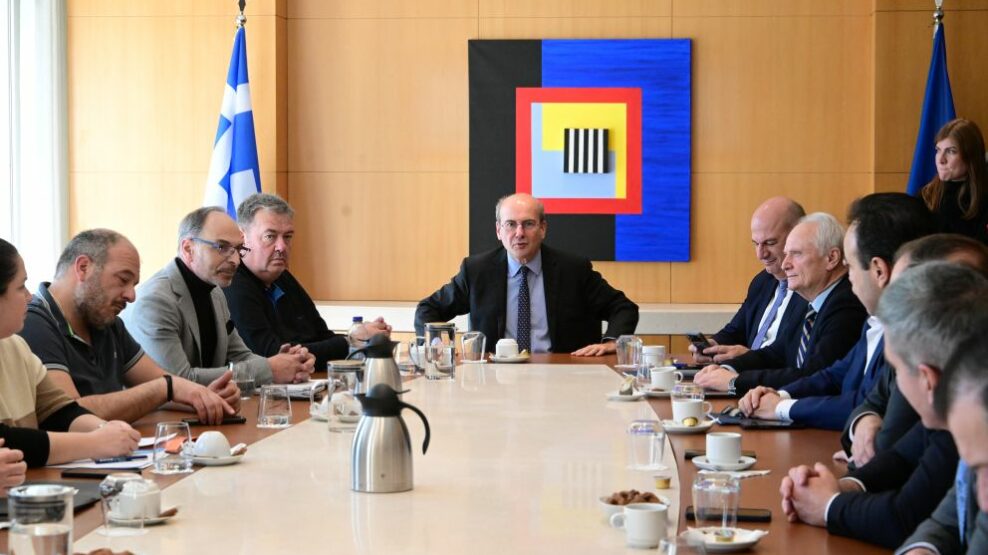 Σε εξέλιξη βρίσκεται η συνάντηση των αγροτών και κτηνοτρόφων με τον αντιπρόεδρο της κυβέρνησης, Κωστή Χατζηδάκη, και τον υπουργό Αγροτικής Ανάπτυξης και Τροφίμων, Κώστα Τσιάρα. Στη συνάντηση θα συμμετάσχουν επίσης ο διοικητής της ΑΑΔΕ, Γιώργος Πιτσιλής, και ο διοικητής του ΟΠΕΚΕΠΕ, Ιωάννης Καβαδάς.