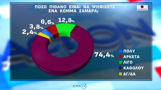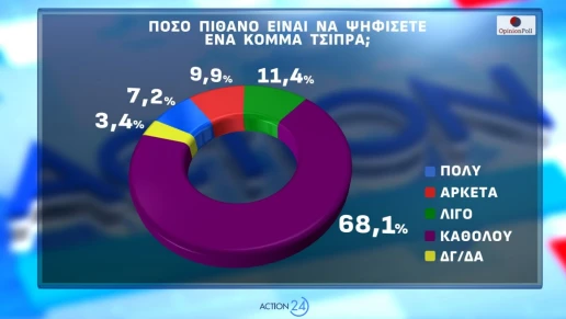 Αντίθετα, περιορισμένη απήχηση καταγράφουν τα σενάρια δημιουργίας κόμματος από τον Αλέξη Τσίπρα ή τον Αντώνη Σαμαρά. Για ένα κόμμα Τσίπρα, μόλις το 7,2% δηλώνει «πολύ» πιθανό να το ψηφίσει, ενώ για τον Αντώνη Σαμαρά το αντίστοιχο ποσοστό περιορίζεται στο 3,8%, με τη συντριπτική πλειονότητα να απαντά «καθόλου».
