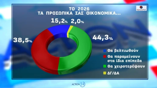 Για το 2026, το 44,3% εκτιμά ότι η προσωπική του οικονομική κατάσταση θα επιδεινωθεί, ενώ μόλις το 15,2% εμφανίζεται αισιόδοξο.