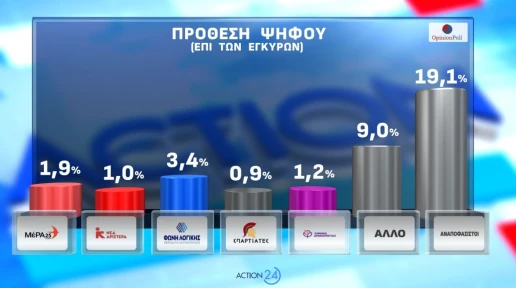 Αξιοσημείωτο είναι ότι οι αναποφάσιστοι ανέρχονται στο 19,1%, στοιχείο που δείχνει ότι παραμένει ανοικτό πεδίο μετακινήσεων στο εκλογικό σώμα.