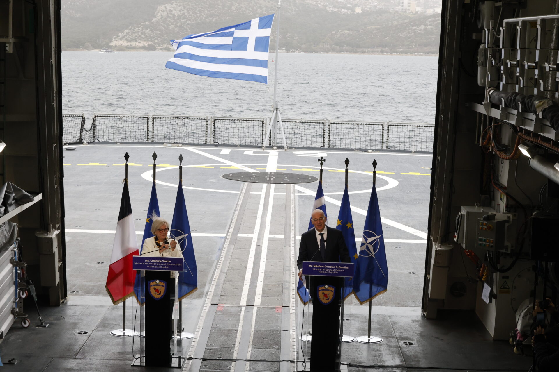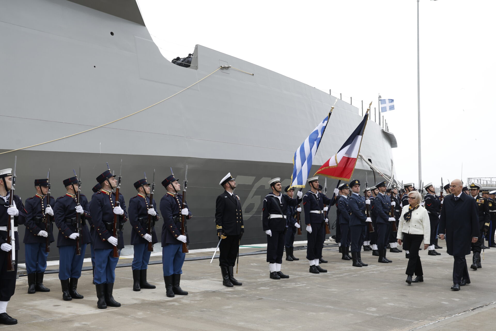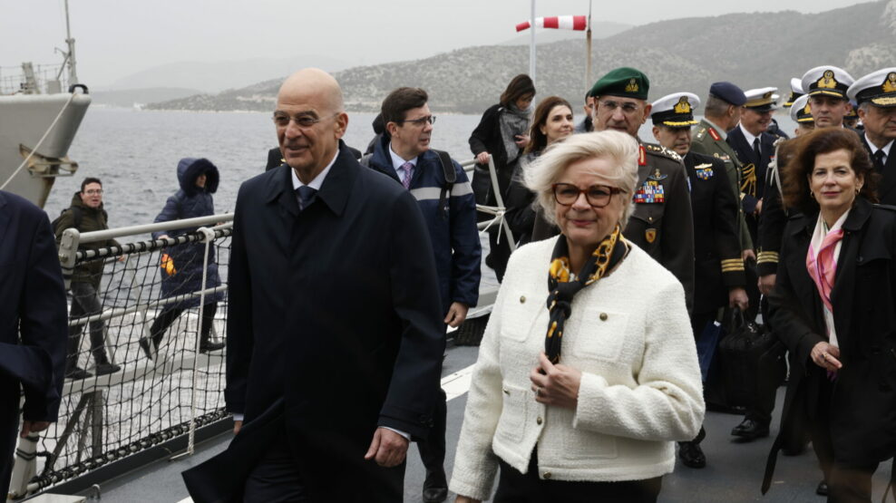 Στη φρεγάτα «Κίμων» υποδέχθηκε σήμερα, Πέμπτη 29 Ιανουαρίου, τη Γαλλίδα ομόλογό του, Κατρίν Βοτρέν, ο υπουργός Εθνικής Άμυνας, Νίκος Δένδιας, σε μια κίνηση υψηλού συμβολισμού για τη στρατηγική συνεργασία Ελλάδας και Γαλλίας.
