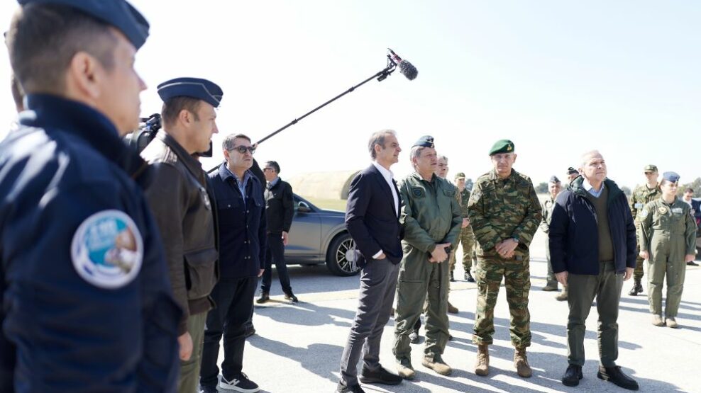 Στη Λάρισα βρέθηκε ο πρωθυπουργός Κυριάκος Μητσοτάκης, πραγματοποιώντας επίσκεψη στο Εθνικό Κέντρο Αεροπορικών Επιχειρήσεων της Πολεμικής Αεροπορίας.