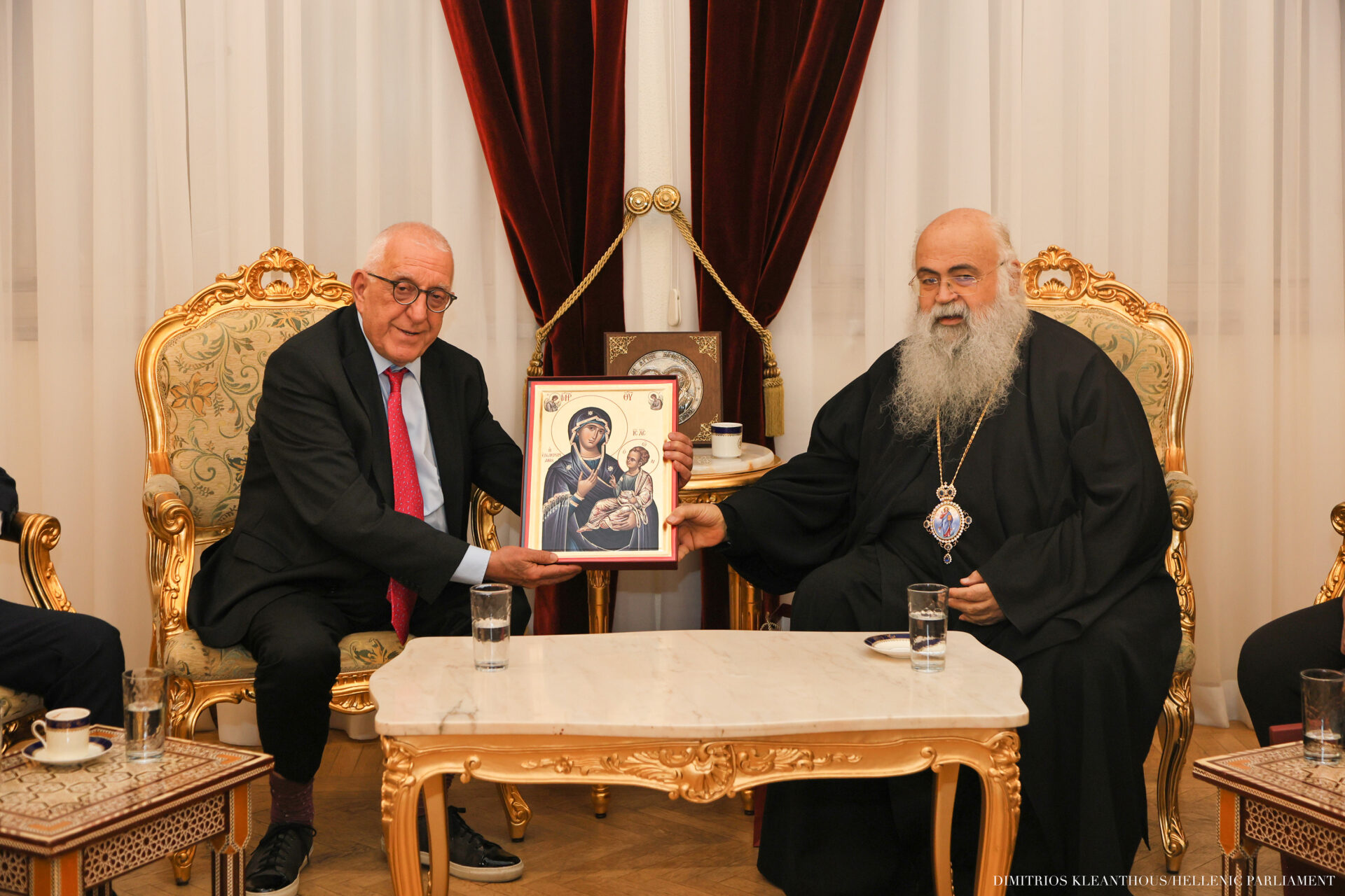 Κατά την παραμονή του στη Λευκωσία, ο Πρόεδρος του ελληνικού Κοινοβουλίου συναντήθηκε, επίσης, με τον Αρχιεπίσκοπο Νέας Ιουστινιανής και Πάσης Κύπρου κ.κ. Γεώργιο, με τον οποίο συζητήθηκαν ζητήματα που αφορούν τον ρόλο της Εκκλησίας στη διατήρηση της ιστορικής μνήμης, της εθνικής ταυτότητας και της πνευματικής συνοχής του κυπριακού λαού.