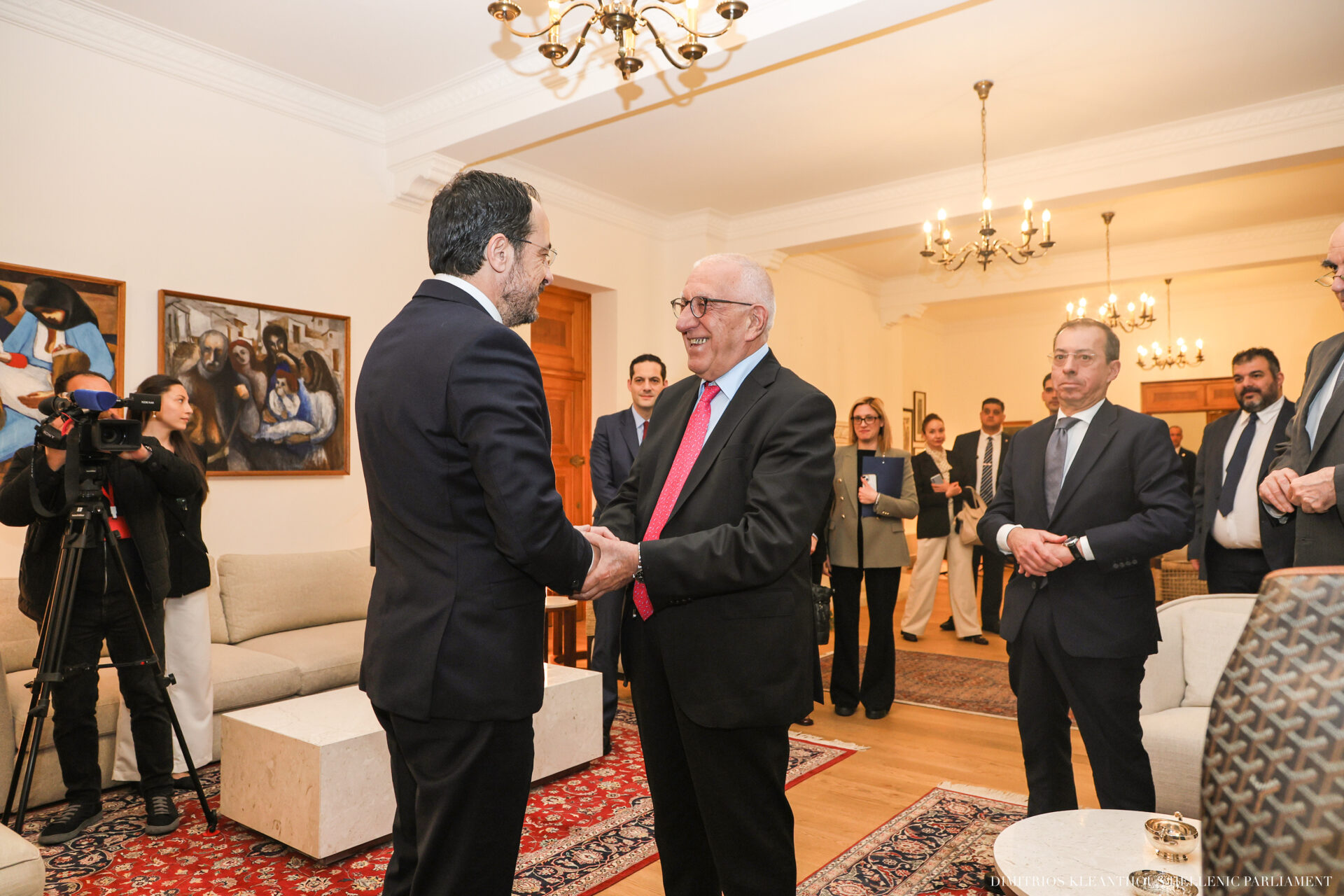 Ο Πρόεδρος του ελληνικού Κοινοβουλίου έγινε δεκτός από τον Πρόεδρο της Κυπριακής Δημοκρατίας Νίκο Χριστοδουλίδη στο Προεδρικό Μέγαρο της Λευκωσίας, μέσα σε ιδιαίτερα θερμό κλίμα.