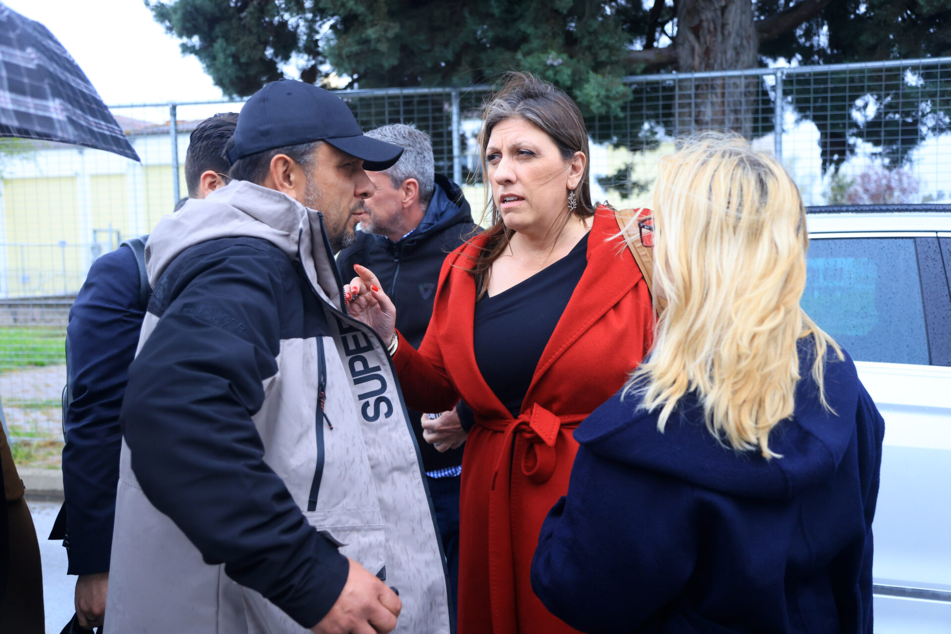 Η Ζωή Κωνσταντοπούλου, με το που εισήλθε στην αίθουσα, έθεσε επιτακτικά ζήτημα για τη διάταξη του χώρου, απευθυνόμενη στον πρόεδρο της Ολομέλειας των Δικηγορικών Συλλόγων, Ανδρέα Κουτσόλαμπρο, ρωτώντας αν είναι αποδεκτό οι δικηγόροι να κάθονται πίσω από τους κατηγορούμενους. Τόνισε ότι δεν έχει υπάρξει προηγούμενο με αστυνομική παρουσία κατά την άσκηση των καθηκόντων των συνηγόρων και χαρακτήρισε την κατάσταση προσβλητική για το δικηγορικό σώμα. Στρέφοντας μάλιστα την κριτική της προς τους αστυνομικούς, διερωτήθηκε «τι ακριβώς κάνουν εδώ», ενώ φέρεται να κατέγραφε τη σκηνή με το κινητό της τηλέφωνο.
