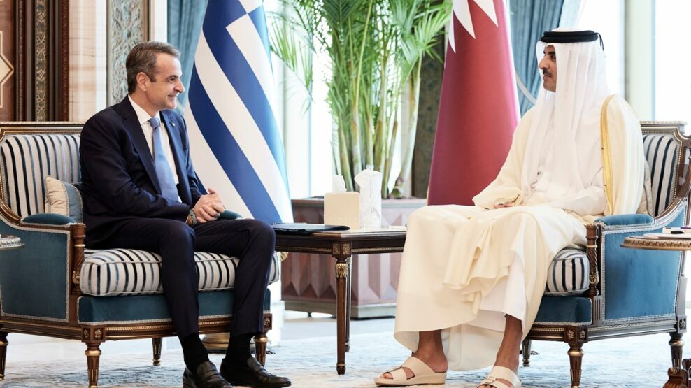 Με φόντο την επίσκεψη-σταθμό στην Ινδία ο Κυριάκος Μητσοτάκης μετέβη στην Ντόχα, όπου συναντήθηκε το Σάββατο με τον εμίρη του Κατάρ, σεΐχη Ταμίμ μπιν Χαμάντ Αλ Θάνι, συνεχίζοντας το μπαράζ διεθνών επαφών, με στόχο την ανάδειξη της Ελλάδας ως ελκυστικού επενδυτικού προορισμού, και προωθώντας παράλληλα τον αναβαθμισμένο ρόλο της χώρας ως πυλώνα σταθερότητας και ειρήνης στην ευρύτερη περιοχή της ΝΑ Μεσογείου και της Μέσης Ανατολής. Κατά τη συνάντηση του πρωθυπουργού με τον εμίρη επαναδιατυπώθηκε η αμοιβαία βούλησή τους για ενίσχυση της διμερούς συνεργασίας στην Οικονομία και σε τομείς όπως ο τουρισμός και ο πολιτισμός, με τον κ. Μητσοτάκη να εστιάζει στις θετικές προοπτικές της ελληνικής Οικονομίας μετά και την ανάκτηση της επενδυτικής βαθμίδας. Μάλιστα συμφωνήθηκε να πραγματοποιηθεί σύντομα επιχειρηματική αποστολή στην Αθήνα για τη διερεύνηση δυνατοτήτων συνεργασίας, κατόπιν πρόσκλησης που απηύθυνε στον εμίρη του Κατάρ να επισκεφθεί τη χώρα μας.
