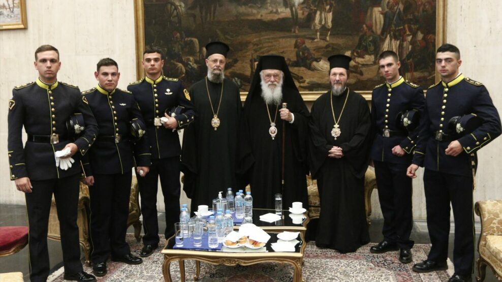 Επίτιμος διδάκτορας της Στρατιωτικής Σχολής Ευελπίδων αναγορεύτηκε χθες ο Αρχιεπίσκοπος Αθηνών Ιερώνυμος. Της απονομής του διδακτορικού τίτλου προηγήθηκαν οι χαιρετισμοί που απηύθυναν ο διοικητής της σχολής, υποστράτηγος Αναστάσιος Πολύχρονος, ο αρχηγός ΓΕΣ, αντιστράτηγος Γεώργιος Κωστίδης, και ο υφυπουργός Εθνικής Άμυνας, Ιωάννης Κεφαλογιάννης. Παρέστησαν οι Μητροπολίτες Μεσογαίας και Λαυρεωτικής Νικόλαος, Γλυφάδας, Ελληνικού, Βούλας, Βουλιαγμένης & Βάρης Αντώνιος, καθηγητές και Ευέλπιδες. Τον Αρχιεπίσκοπο συνόδευε ο επίσκοπος Τανάγρας Απόστολος και ο διευθυντής του Γραφείου του, Ιωάννης Σ. Τσούρας.