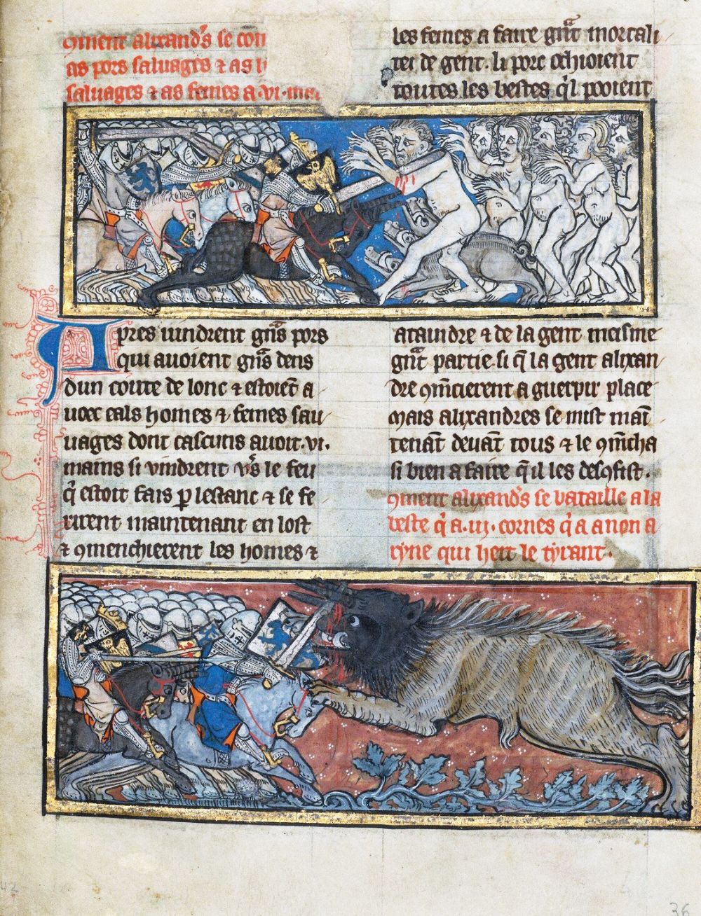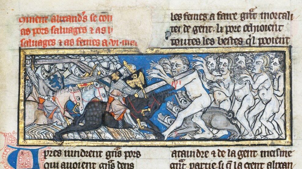 Ο Μέγας Αλέξανδρος (356-323 π.Χ.), ο μεγαλύτερος στρατηλάτης όλων των εποχών, όπως αποτυπώνεται στο πολυτελές χειρόγραφο υψηλής ποιότητας της δεκαετίας του 1290 -φτιάχτηκε για τη διαπαιδαγώγηση μελών της αριστοκρατίας-, είναι αριστουργηματικός. Καθεμία από αυτές τις πολύχρωμες εικόνες ζωντανεύει τα κατορθώματά του, με τον ίδιο να μας «επανασυστήνεται»: παρουσιάζεται όχι ως ήρωας του κλασικού κόσμου αλλά ως μεσαιωνικός ιππότης, πλήρως εξοπλισμένος – και με πανοπλία του 13ου αιώνα.