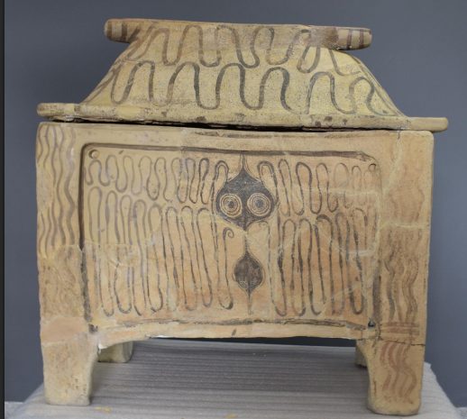 Η λάρνακα και τα αγγεία προέρχονται από τη Μινωική Συλλογή του Εθνικού Αρχαιολογικού Μουσείου και παρουσιάζονται στο κοινό για πρώτη φορά. Η έκθεση φιλοξενείται στην Αίθουσα του Βωμού (αιθ. 34), από 29 Οκτωβρίου 2025 έως 26 Ιανουαρίου 2026.