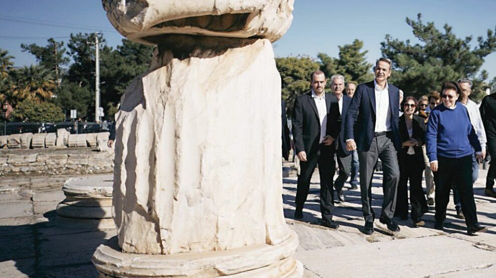 Συνοδευόμενος από την υπουργό Πολιτισμού, Λίνα Μενδώνη, ο πρωθυπουργός Κυριάκος Μητσοτάκης ξεναγήθηκε χθες από την αναπληρώτρια προϊσταμένη της Εφορείας Αρχαιοτήτων Δυτικής Αττικής, Πόπη Φλώρου, στον αρχαιολογικό χώρο Ελευσίνας: συγκεκριμένα στο αρχαιολογικό μουσείο, η μόνιμη έκθεση του οποίου επανασχεδιάστηκε και εκσυγχρονίστηκε το 2023 στο πλαίσιο της Πολιτιστικής Πρωτεύουσας, και στον Ιερό Ναό Εισοδίων της Θεοτόκου «Παναγία Μεσοσπορίτισσα».