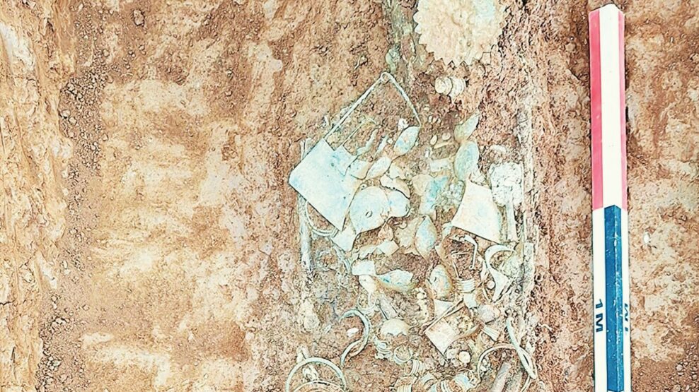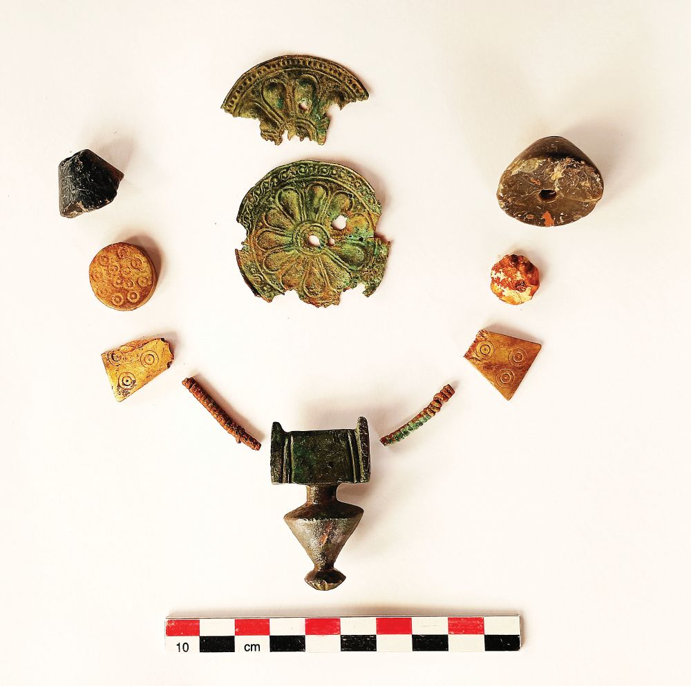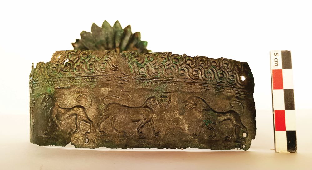 Ωστόσο, το ανεστραμμένο στην κεφαλή της νεκρής διάδημα, με τους λέοντες σε ύπτια θέση και το κόσμημα πλοχμού στο κάτω άκρο, συμβολίζει την παραίτηση ή την πτώση του μονάρχη, σε κάθε περίπτωση την απώλεια εξουσίας/αξιώματος. Η ευπραγία της, όπως και να ‘χει, αποδεικνύεται από τα πολυάριθμα χάλκινα κτερίσματα: ξεχωρίζουν πόρπες με άλογα, περιδέραιο με αγγειόσχημο περίαπτο, χάντρες από ελεφαντοστά, ψήφοι από κεχριμπάρι και, ακόμη, βραχιόλια και δαχτυλίδια σε όλα τα δάχτυλα. Στην ίδια συστάδα τάφων βρέθηκε ταφή συγγενούς της, κοριτσιού τεσσάρων ετών, στεφανωμένου με χάλκινο διάδημα με ένθετους ρόδακες. Ανάμεσα δε, στα άλλα ευρήματα που έχουν εντοπιστεί εκεί, ξεχωρίζουν τριφυλλόσχημη οινοχόη με μυθικά πλάσματα και τον Ερμή ως «ψυχοπομπό», χάλκινες φιάλες και ένας πανέμορφος κύλικας με πετεινούς. H σωστική αρχαιολογική έρευνα ξεκίνησε με αφορμή την κατασκευή φωτοβολταϊκού πάρκου της εταιρείας METKA ATE, θυγατρικής της Metlen Energy & Metals και χρηματοδοτείται σχεδόν εξολοκλήρου από τον Όμιλο Μυτιληναίου.