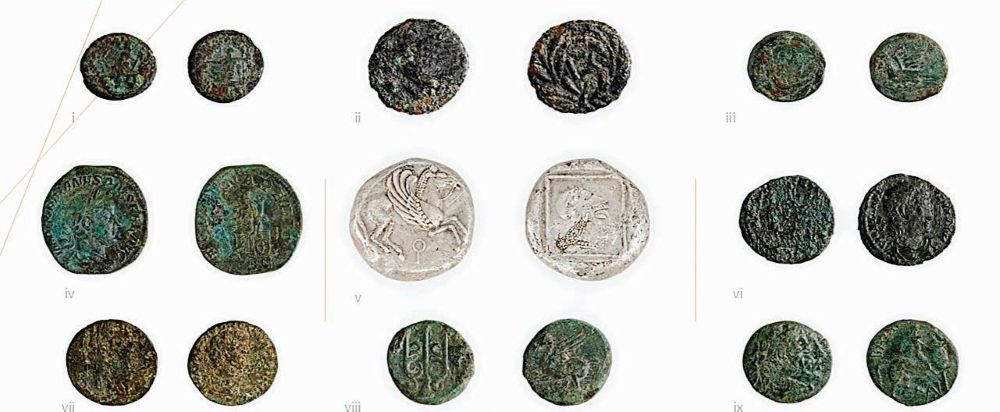 Από τον χώρο της δεξαμενής περισυνελέγη ασημένιος στατήρας, κοπής Κορίνθου (549-510 π.Χ.), μαζί με αναθηματικά πήλινα ομοιώματα δαχτύλων, χεριού, κάτω άκρου και ένα αναθηματικό πήλινο προσωπείο, πιθανότατα ο Αρποκράτης – Ώρος σε παιδική ηλικία. Από τα ευρήματα αυτά, σε συνδυασμό με εκείνα που εντοπίστηκαν το 2024 (ανάμεσά τους πήλινα αναθήματα ανθρώπινων μελών, μεταλλικά εργαλεία παρασκευής φαρμάκων και ποσότητα δηλητηρίου αρσενικού) καθίσταται σαφές ότι ο χώρος χρησιμοποιούνταν για τέτοιες μυστηριακές τελετές ίασης.