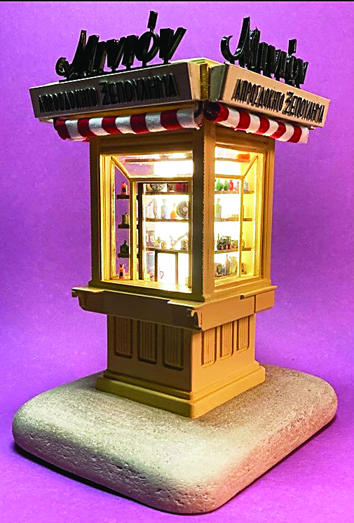 Η δημιουργική αποτύπωση ξεκινάει από τα πρώτα πολυγωνικά κιόσκια της πλατείας Συντάγματος όπως παρουσιάζονται στις καρτ ποστάλ της εποχής: ανάμεσά τους αντικρίζουμε το πρώτο «Μινιόν» στα Χαυτεία, τις «Μούσες» της πλατείας Ομονοίας, τον «Κουτάλα» της Γλυφάδας και το περίπτερο που… κατέρρευσε στην οδό Πανεπιστημίου, κατά τη διάρκεια των έργων του μετρό το 1997.