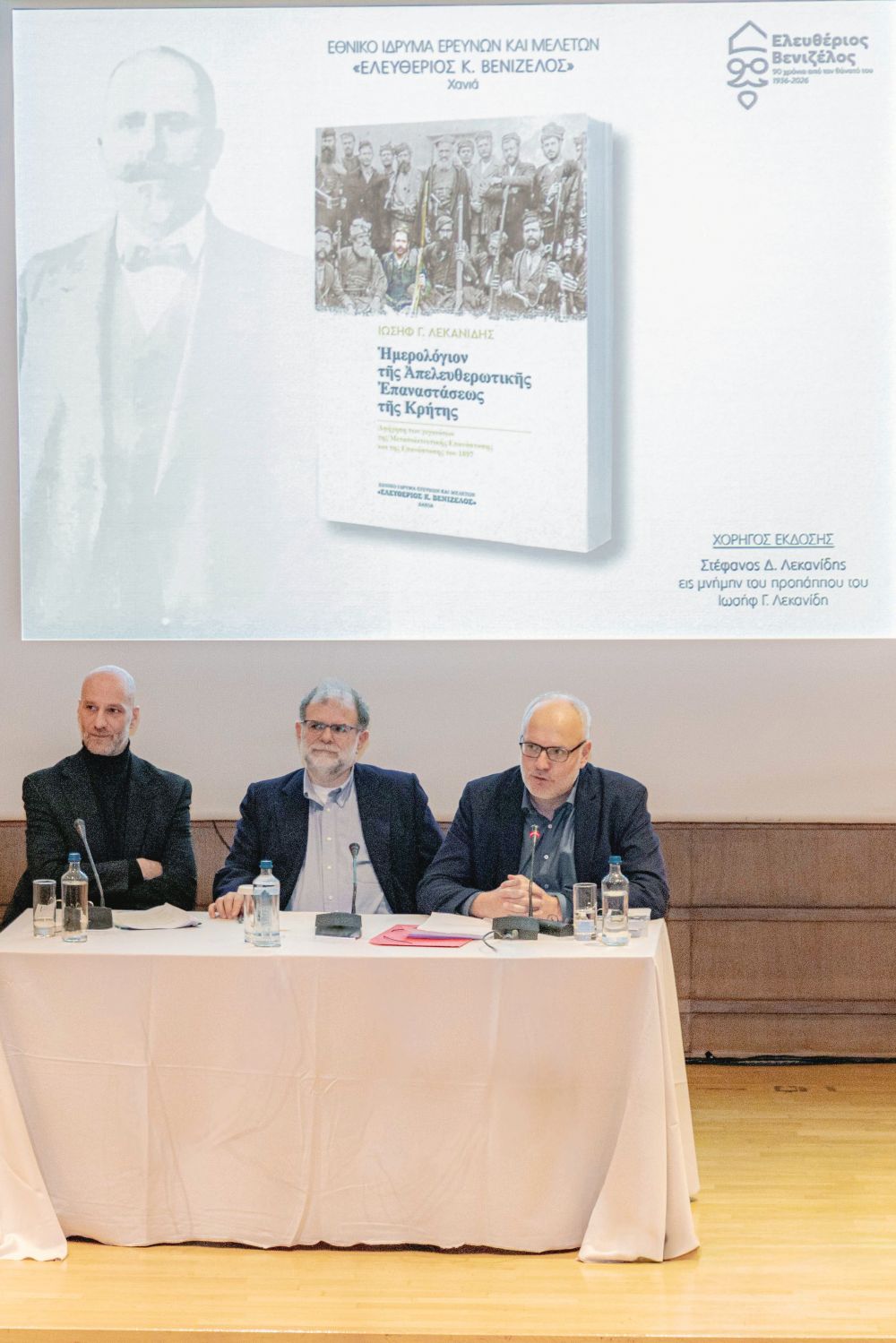 Η νέα έκδοση του Εθνικού Ιδρύματος Ερευνών και Μελετών «Ελευθέριος Κ. Βενιζέλος», το «Ημερολόγιον Απελευθερωτικής Επαναστάσεως Κρήτης» του Ιωσήφ Λεκανίδη, παρουσιάστηκε σε μια εκδήλωση που διοργανώθηκε από το Ίδρυμα και τον Στέφανο Δ. Λεκανίδη και φιλοξενήθηκε στο Εθνικό Μουσείο Φυσικής Ιστορίας Γουλανδρή. Χαιρετισμούς απηύθυναν η πρόεδρος του Εθνικού Μουσείου Φυσικής Ιστορίας Γουλανδρή, Φαλή Βογιατζάκη, ο Στέφανος Λεκανίδης και ο γενικός διευθυντής του Εθνικού Ιδρύματος «Ελευθέριος Κ. Βενιζέλος», Γιώργος Κουκουράκης, ο οποίος και συντόνισε την εκδήλωση.