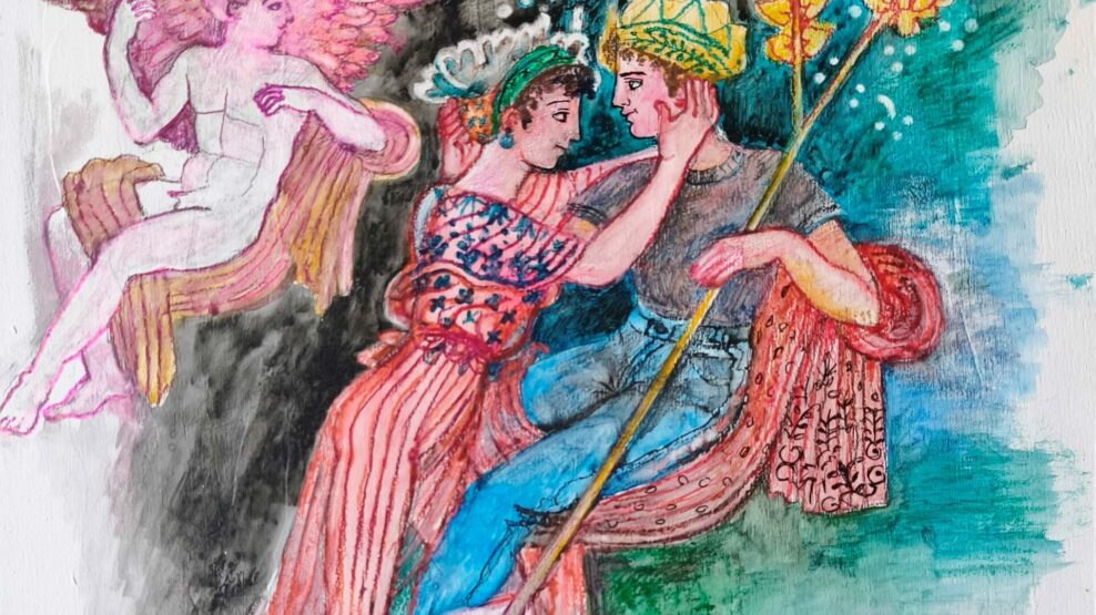 Ο τίτλος της έκθεσης παραπέμπει τόσο στο ομώνυμο διήγημα του 2ου αιώνα π.Χ. του Απουλήιου, όσο και στην εικονογραφία που εμφανίζεται στην ελληνική τέχνη από τον 4ο αιώνα π.Χ.. Η θεματική της συνδέεται με νεοπλατωνικά στοιχεία και αλληγορίες, που έχουν εμπνεύσει λογοτεχνία, θέατρο, μουσική και εικαστικές τέχνες για αιώνες.