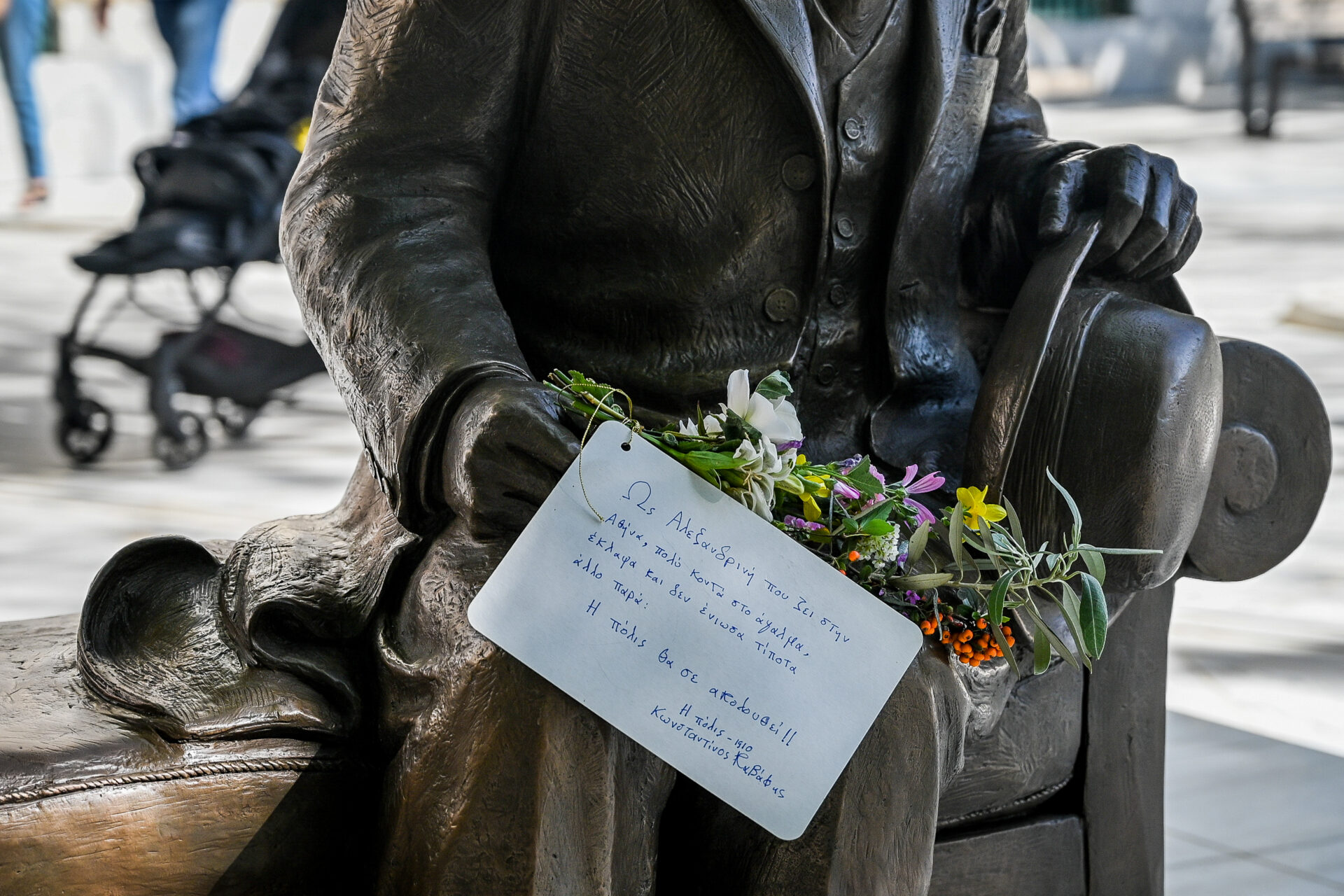 Τις τελευταίες ώρες πλήθος κόσμου έχει επισκεφθεί τον διάσημο πεζόδρομο για να θαυμάζει από κοντά το άγαλμα του Κωνσταντίνου Καβάφη, να καθίσει δίπλα του και να φωτογραφηθεί μαζί του.