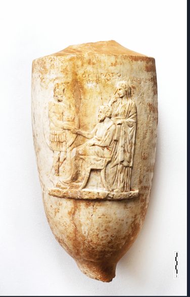 Οι μαρμάρινες λήκυθοι και λουτροφόροι εμφανίζονται από τον ύστερο 5ο και σε όλη τη διάρκεια του 4ου αιώνα π.Χ. στα αρχαία αττικά νεκροταφεία ως επιτύμβια σήματα σε οικογενειακούς ταφικούς περιβόλους. Και αποτελούν προϊόντα αποκλειστικώς των αττικών εργαστηρίων μαρμαρογλυπτικής.