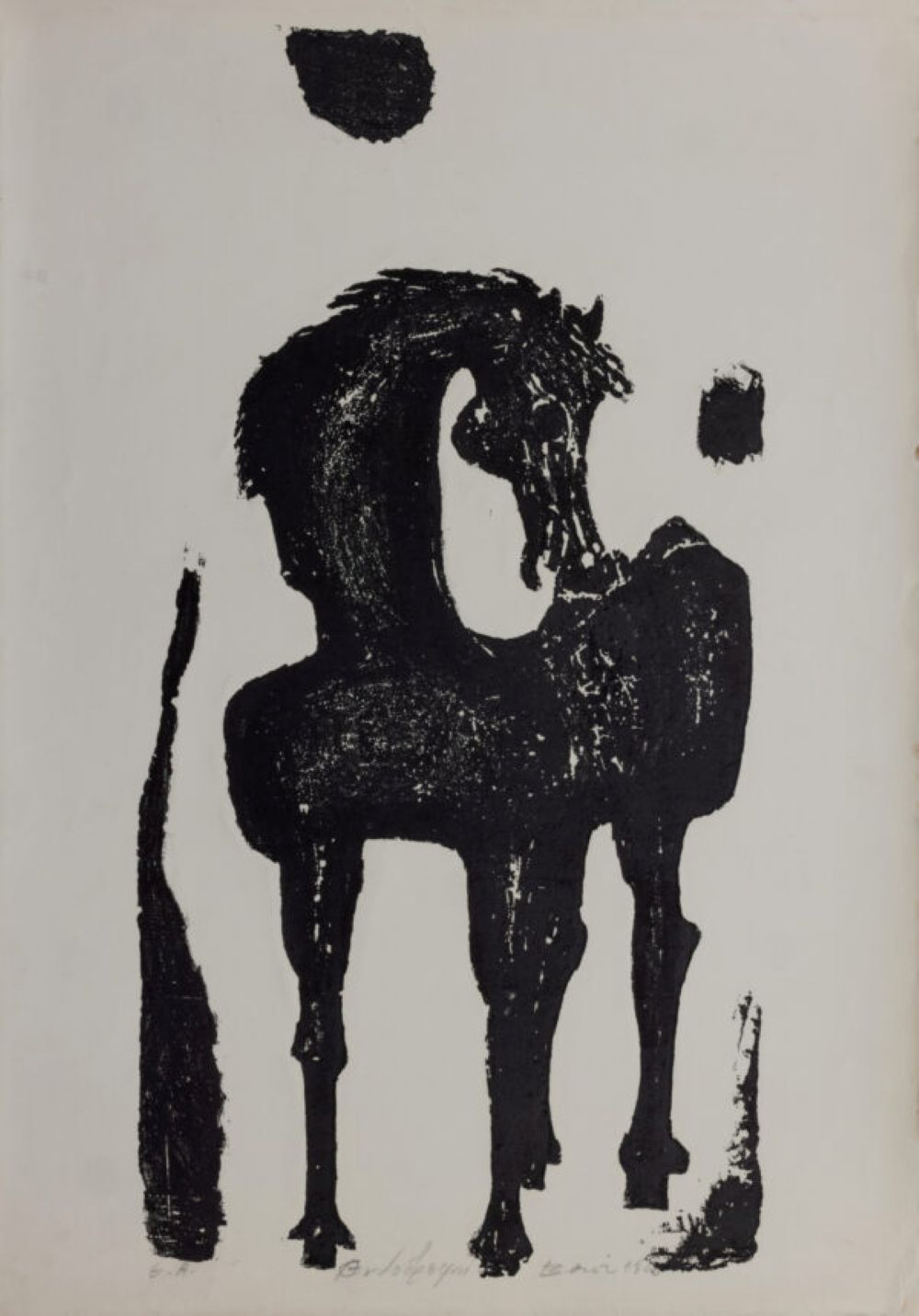Η θεματολογία της Κατράκη δεν περιορίζεται στο ανθρώπινο σώμα, αλλά εκτείνεται στη ζωική μορφή, σε μια ανιμιστική προσέγγιση που διερευνά την αυτοαναφορικότητα της ύπαρξης. Τα άλογα, με τις στιβαρές, τονισμένες καμπύλες τους και τις έντονες χαράξεις, διατηρούν μια αρχαϊκή ακαμψία. Ο τρόπος με τον οποίο εγγράφονται στην επιφάνεια της πέτρας αναδεικνύει τη σωματικότητα ως καταλυτική δύναμη που εκτείνεται πέραν της ανθρώπινης εμπειρίας.